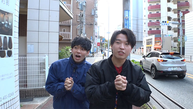 この企画のレギュラー出演者で若手お笑いコンビ・チムニーの2人が、3日間で合計500人獲得を目指す!初日から精力的に行列店をゲットしに福岡の街を駆け回るチムニー。