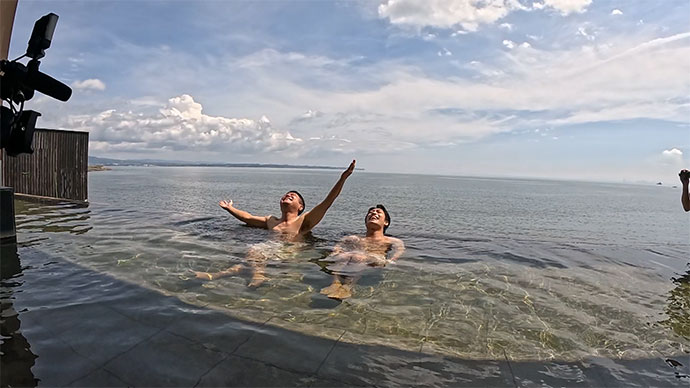 前回、海が近すぎる絶景温泉、探検気分が味わえる洞窟温泉、九州のマリーナベイ・サンズと言われる天空温泉など5湯を満喫した、杉山39と若手俳優の中野勇助の2人が、今回も九州各地を大移動。