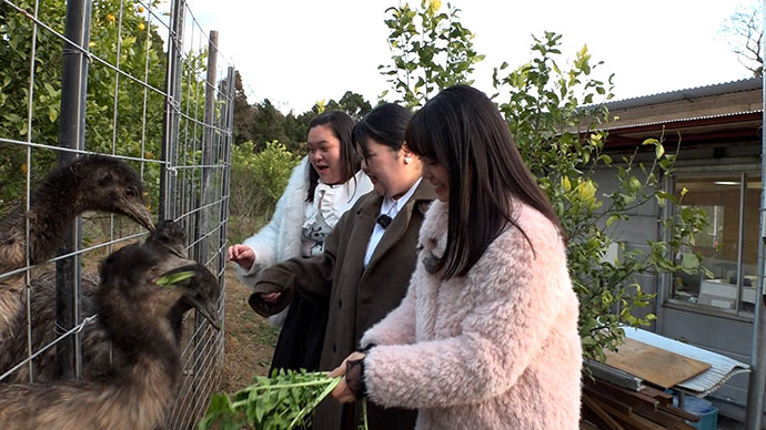 福智町で動物が苦手なあんりさんと田辺さんがエミューを触って「感動体験」をクリア!